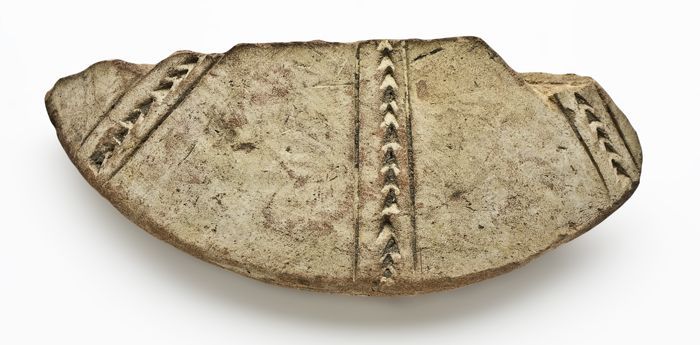 Fragmenten van aardewerk dompers of dovers, versierd...
