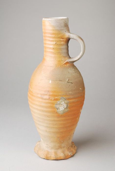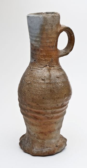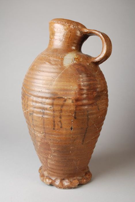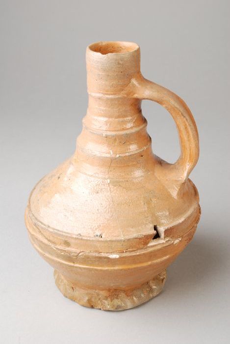 Steengoed kruik op geknepen voet, okerkleurig zoutgl...