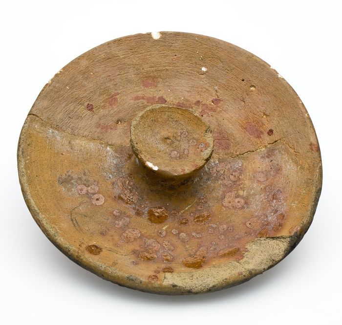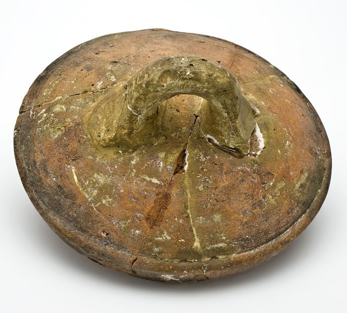 Aardewerk deksel met verzonken knop als handgreep, r...