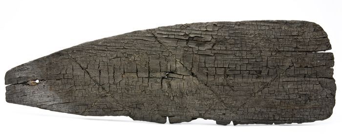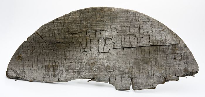 Fragment, halve houten deksel van eikenhout