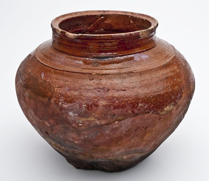 Aardewerk kamerpot met gewelfde bodem, ongeglazuurd,...