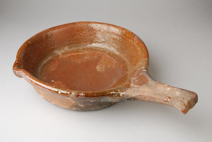 Aardewerk steelpan, bakpan met schenklip en gebolde ...