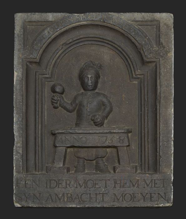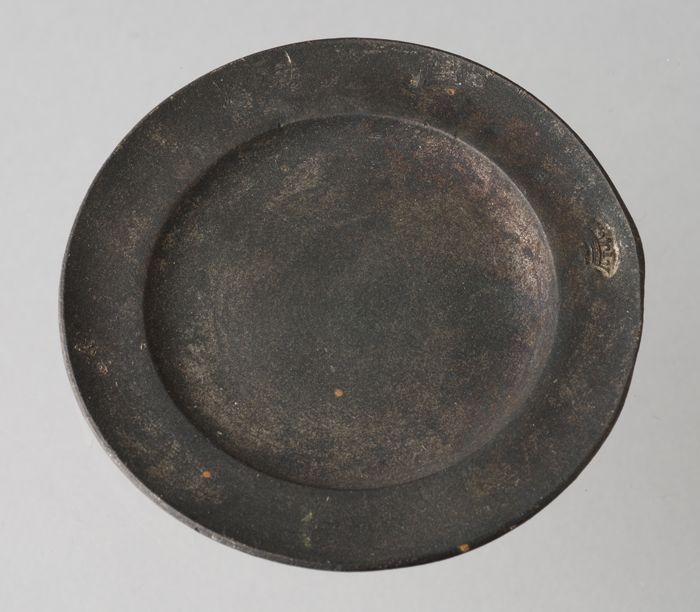 Speelgoed tinnen bord met in de rand een merk
