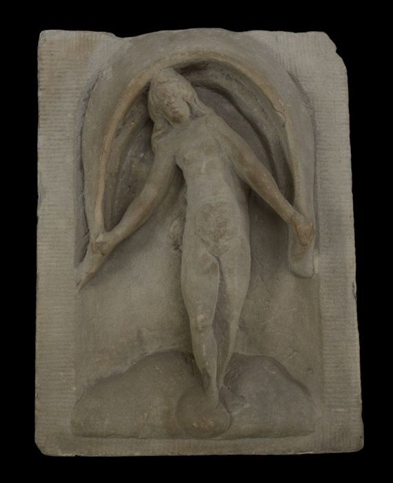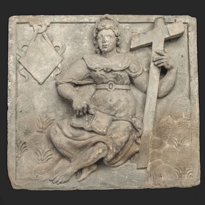 Romp van steengoed jacobakan, op geknepen voet