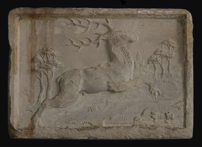 Grape, rood aardewerk, versierd met krans van duimaf...