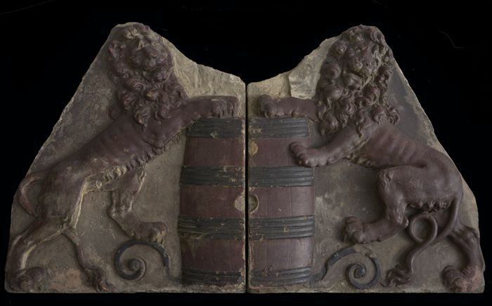 Twee halve houten tondeksels van eikenhout
