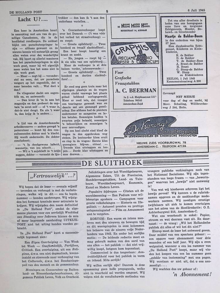 De Holland Post, 6 juli 1945.
