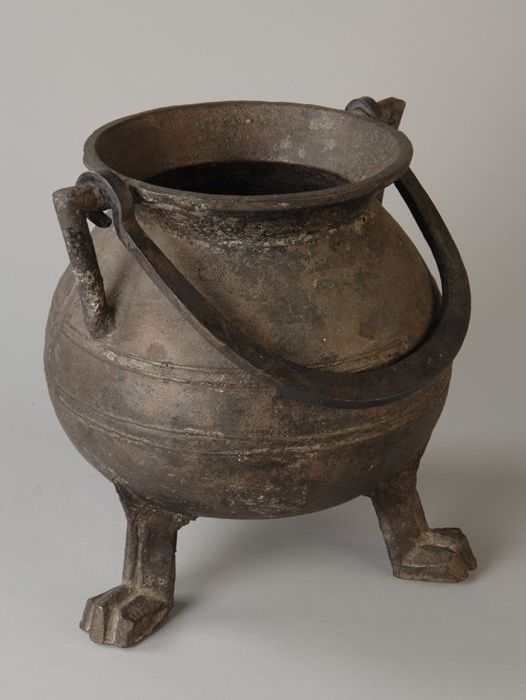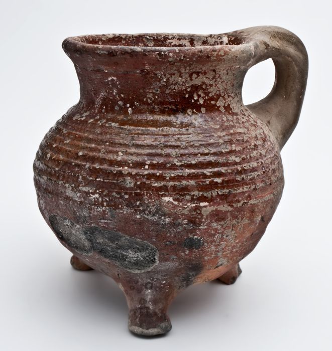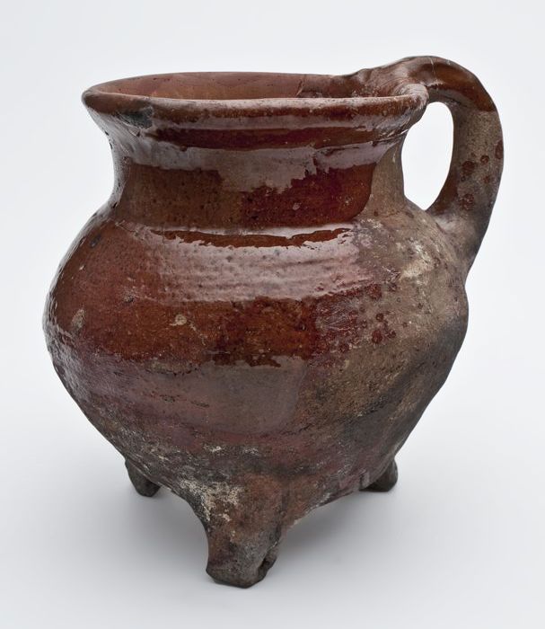 Aardewerk kookkan, grape op drie poten, spaarzaam lo...