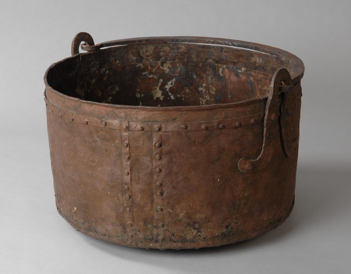 Koperen ketel of aker met genagelde bodem en banden,...
