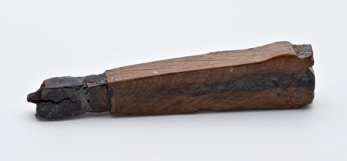 Houten borstel zonder haren met metalen bindwerk