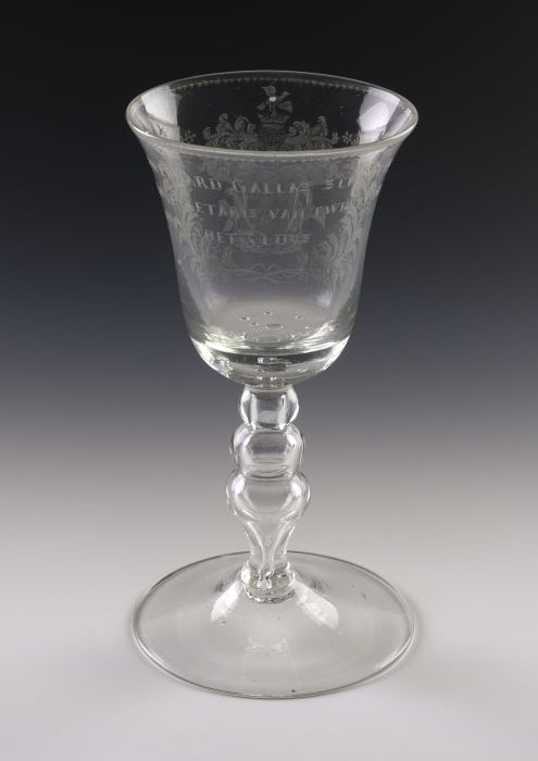Kelkglas, bokaal, gegraveerd met wapen en "IAN EDUAR...