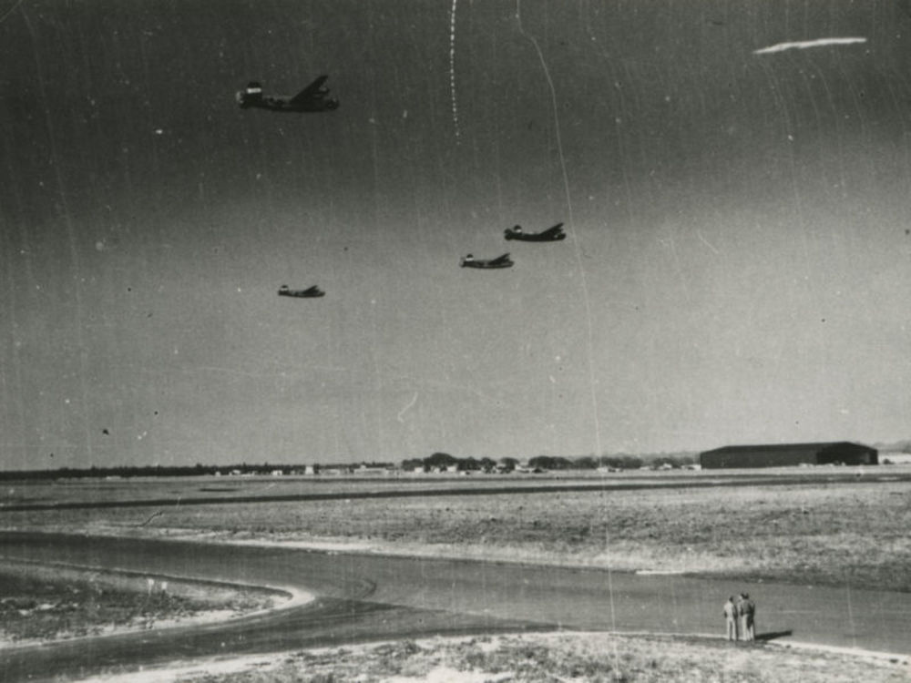 Foto van vier Amerikaanse B-24 Liberator bommenwerpe...
