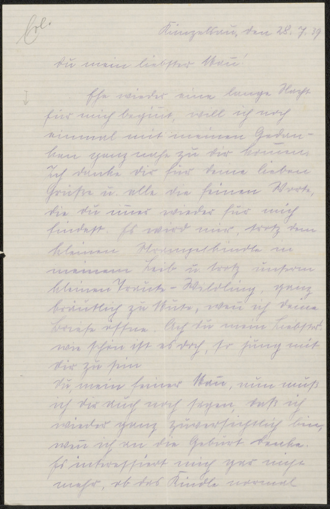Brief aan "Blümchen" (Ella?) van W. Glater & Familie...