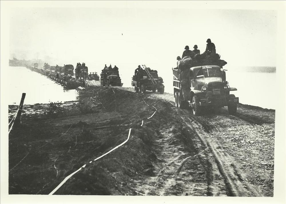 Duitse militairen op truck en halftrack