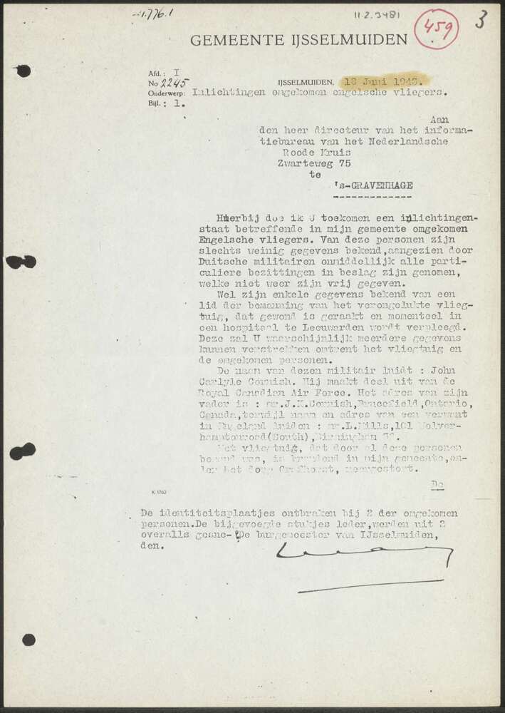 Rapport No. 2245 Gemeente IJsselmuiden 18 juni 1943.