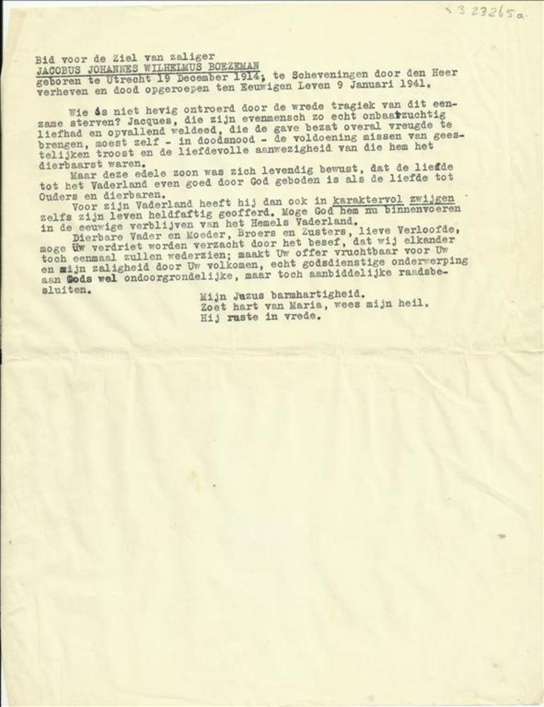 Rouwtekst zaliger Jacques Boezeman, 9 januari 1941 g...