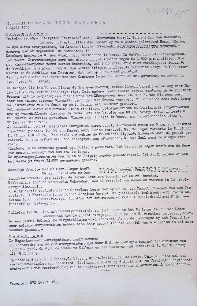 De Vrije Katheder ( Nieuws bulletin), 7 April 1945
