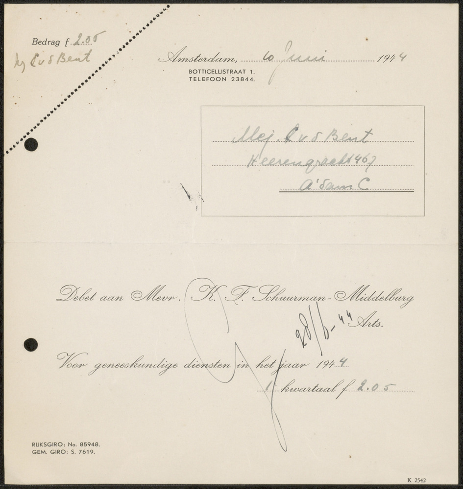 Doktersrekening 1e kwartaal Dr. K. Schuurman-Middelburg