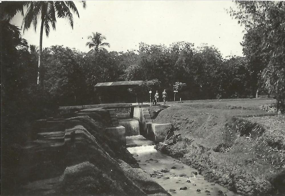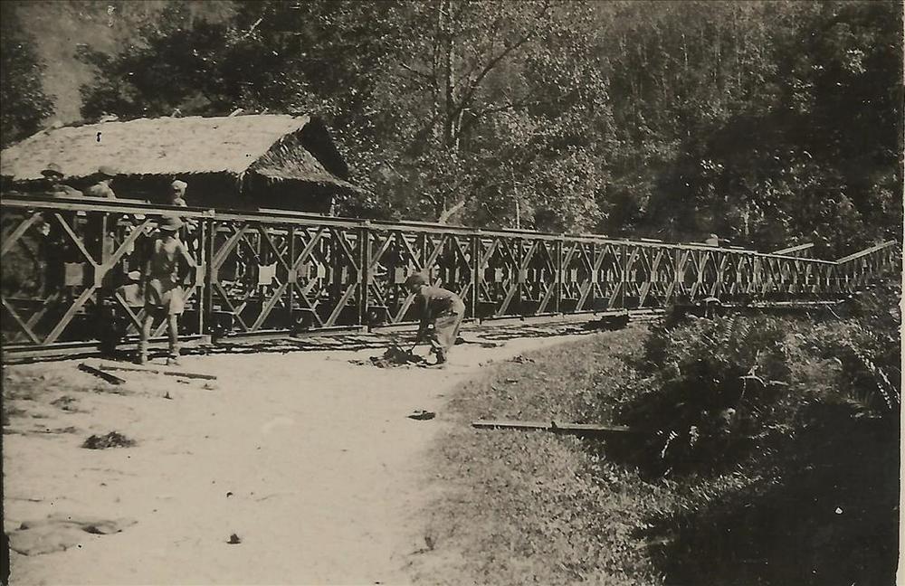 Indië na WO 2; Sumatra, rivier, baileybrug in aanbouw