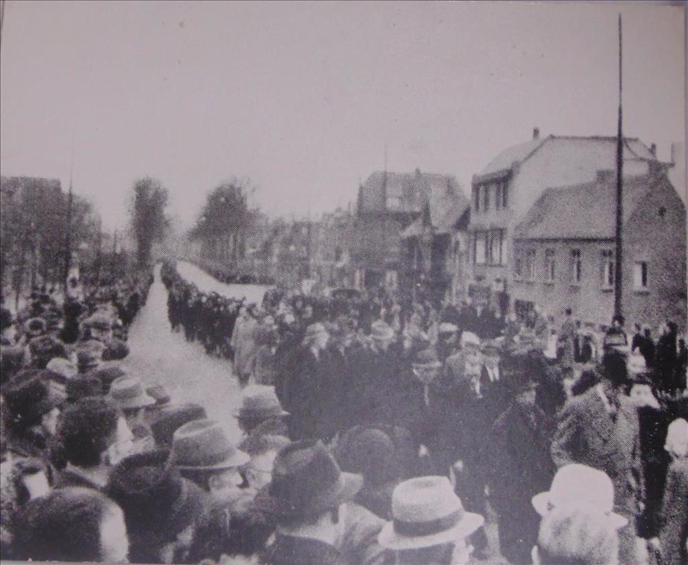 Foto van de begrafenisstoet van de slachtoffers van ...