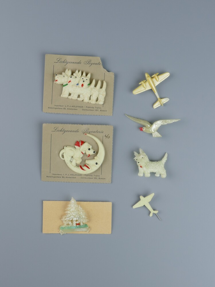 7 lichtgevende speldjes van kunststof uit omstreeks ...