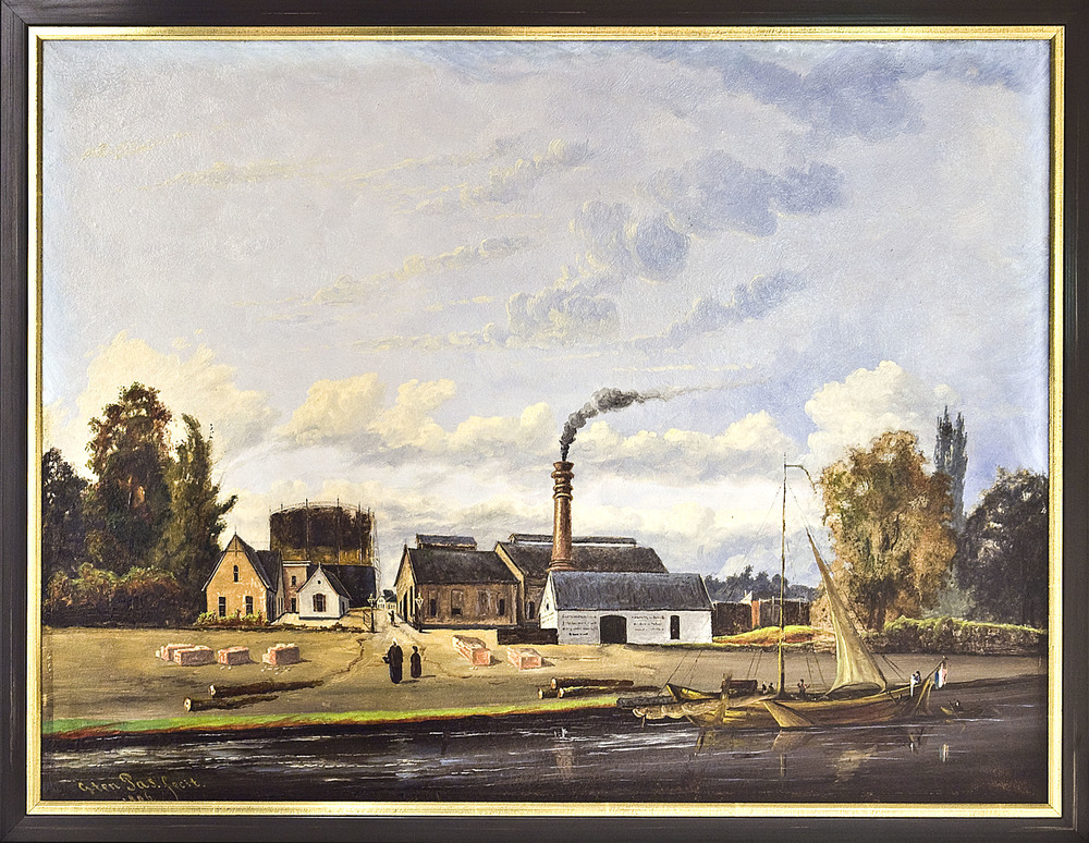 Olieverfschilderij van de Gasfabriek te Apeldoorn, 1...