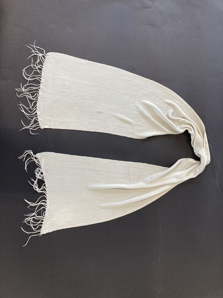 Lichtgrijze tricot sjaal met franje van kunstzijde