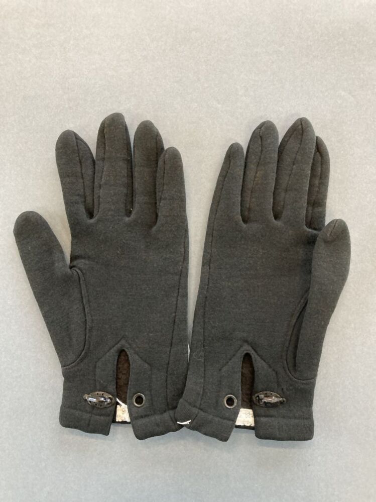 Paar dameshandschoenen, zwart tricot, met lila zijde...