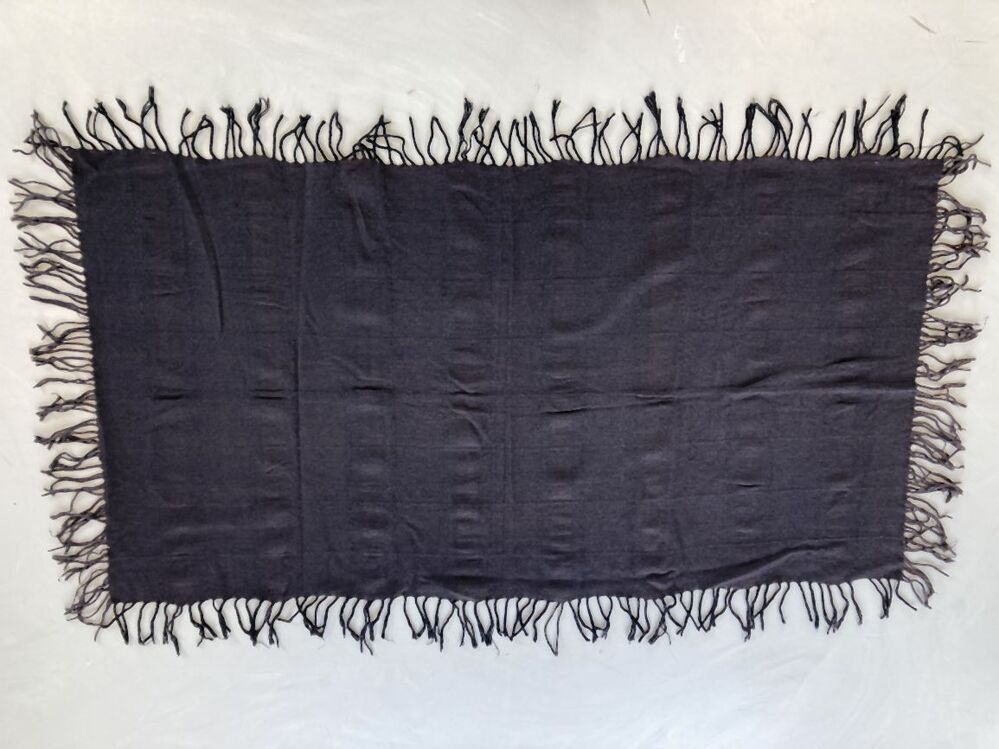 Zwarte kunstzijden sjaal met aangebreide lange franje