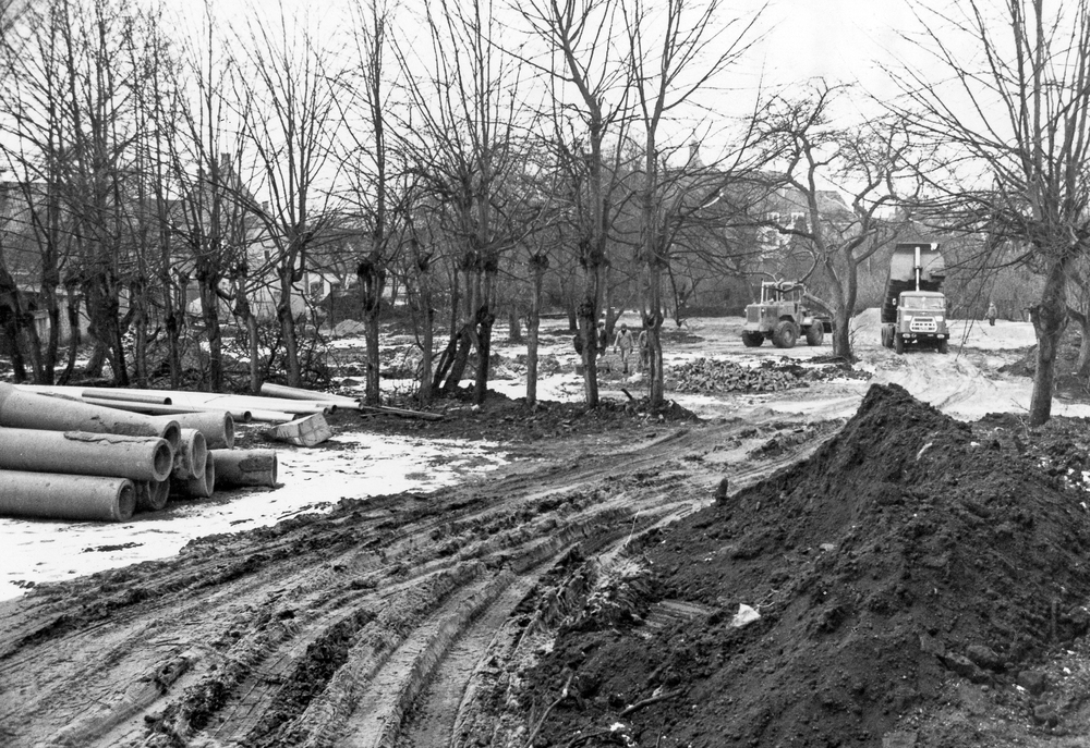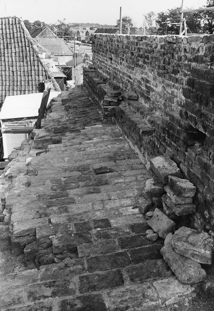 Restanten van de stadsmuur achter het Pius-ziekenhuis
