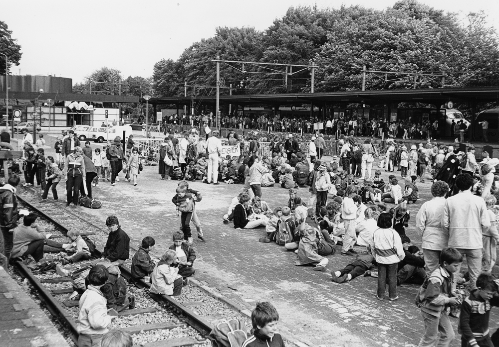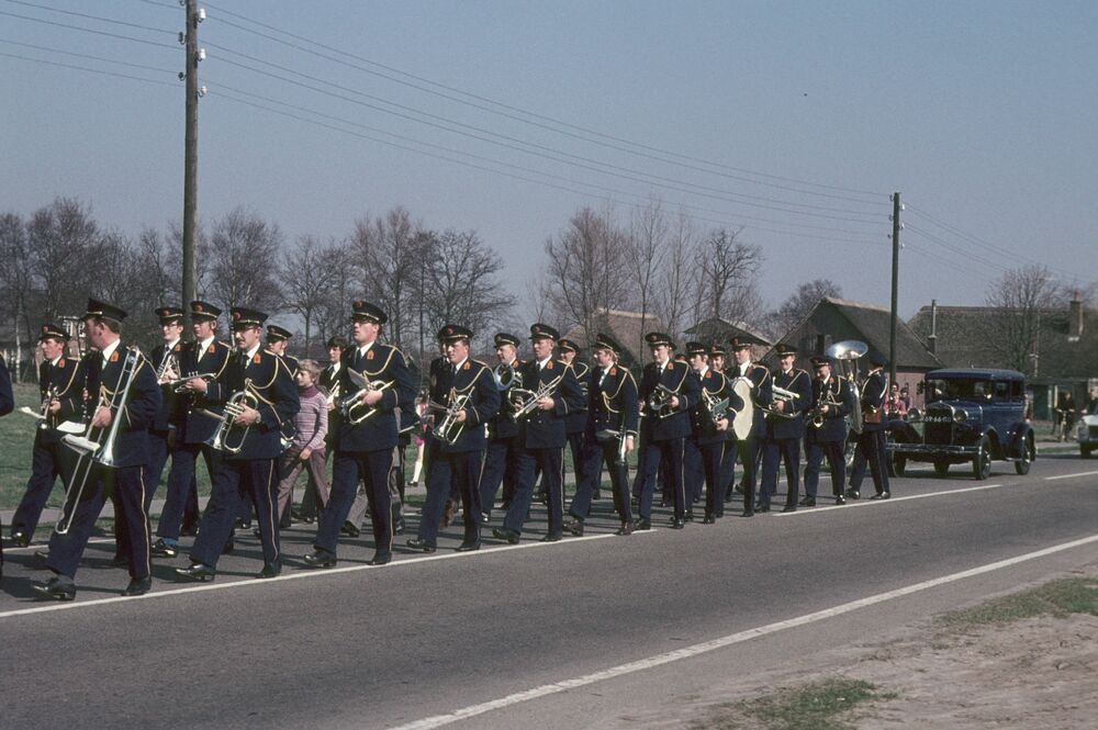 De Harmonie in optocht op de Zuiderzeestraatweg