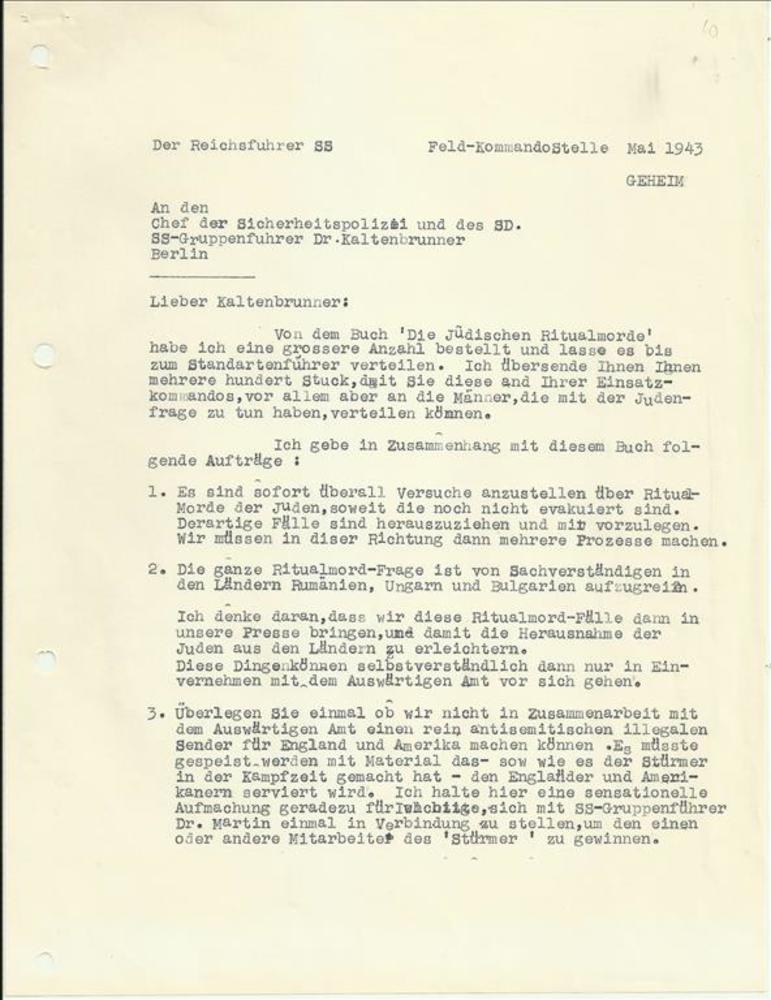 Brief van: Der Reichsführer SS, Feld-KommandoStelle,...