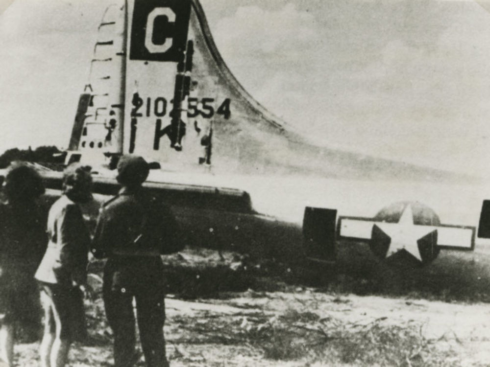 Foto Amerikaanse B-17 Bommenwerper in weiland met dr...