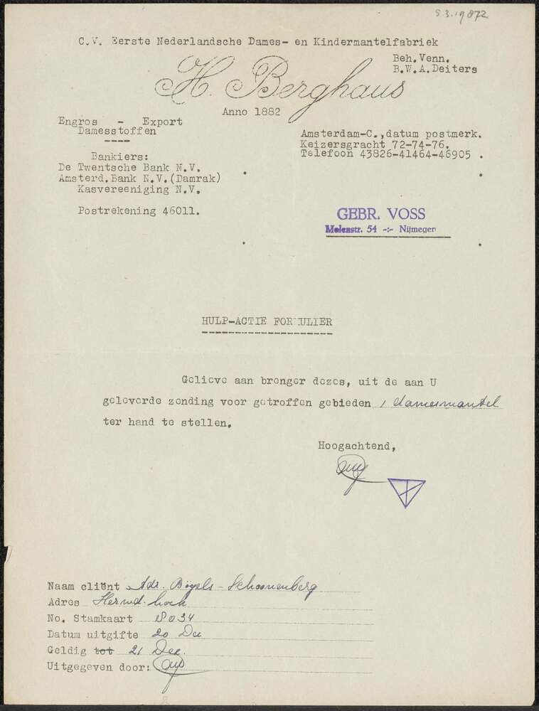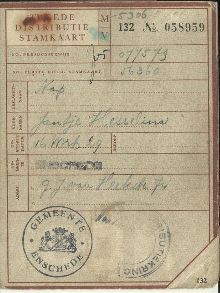 Distributiestamkaart ( tevens bewijs van opneming in...