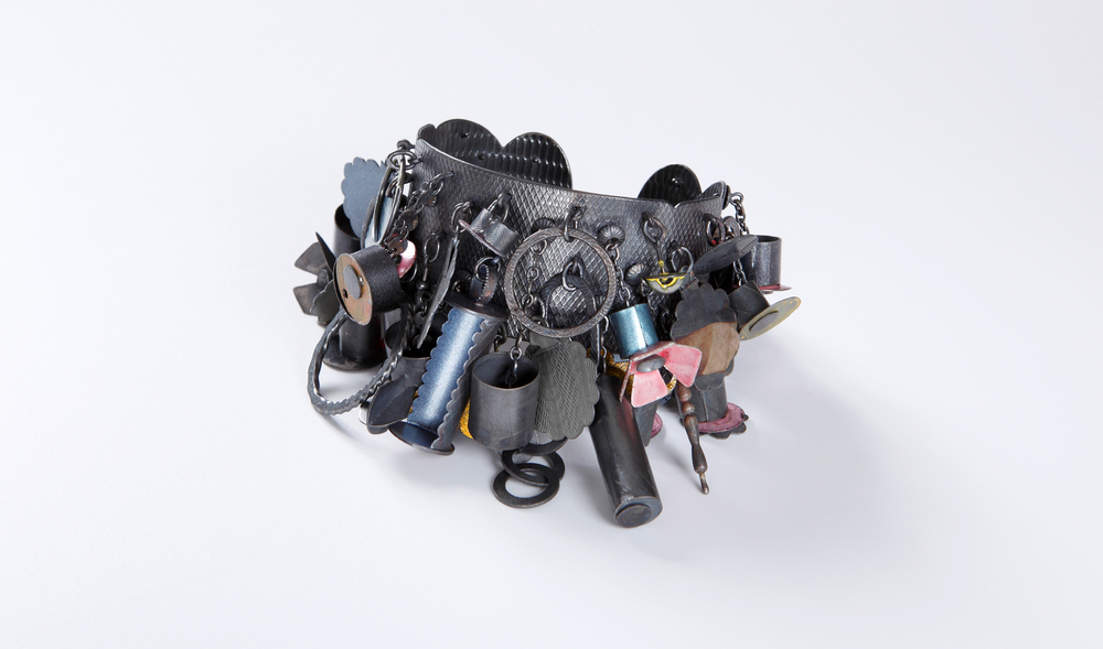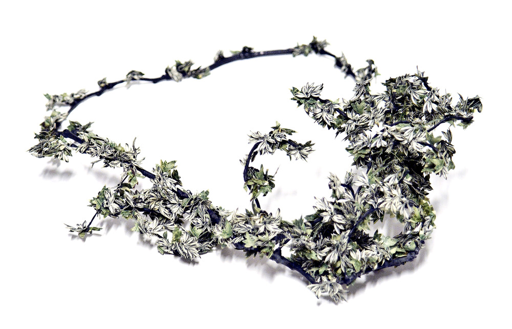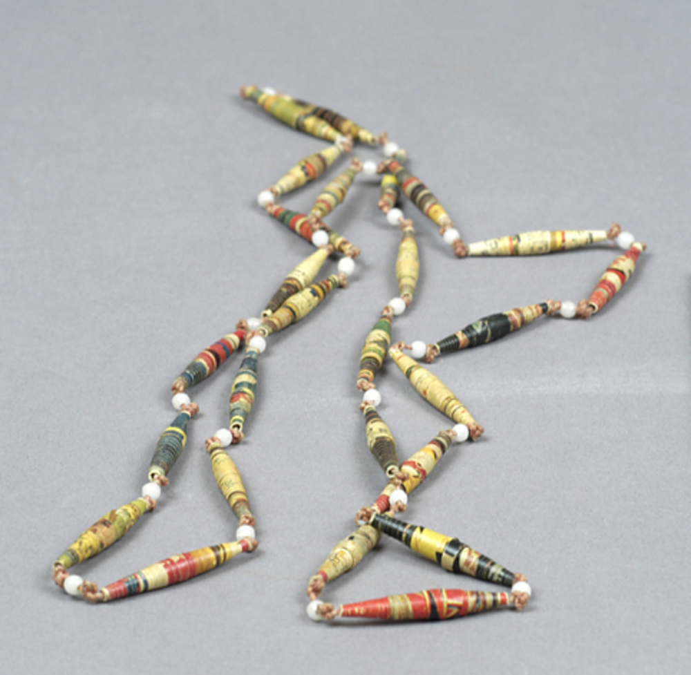 halsketting van papiermaché en witte kralen, jaren 3...