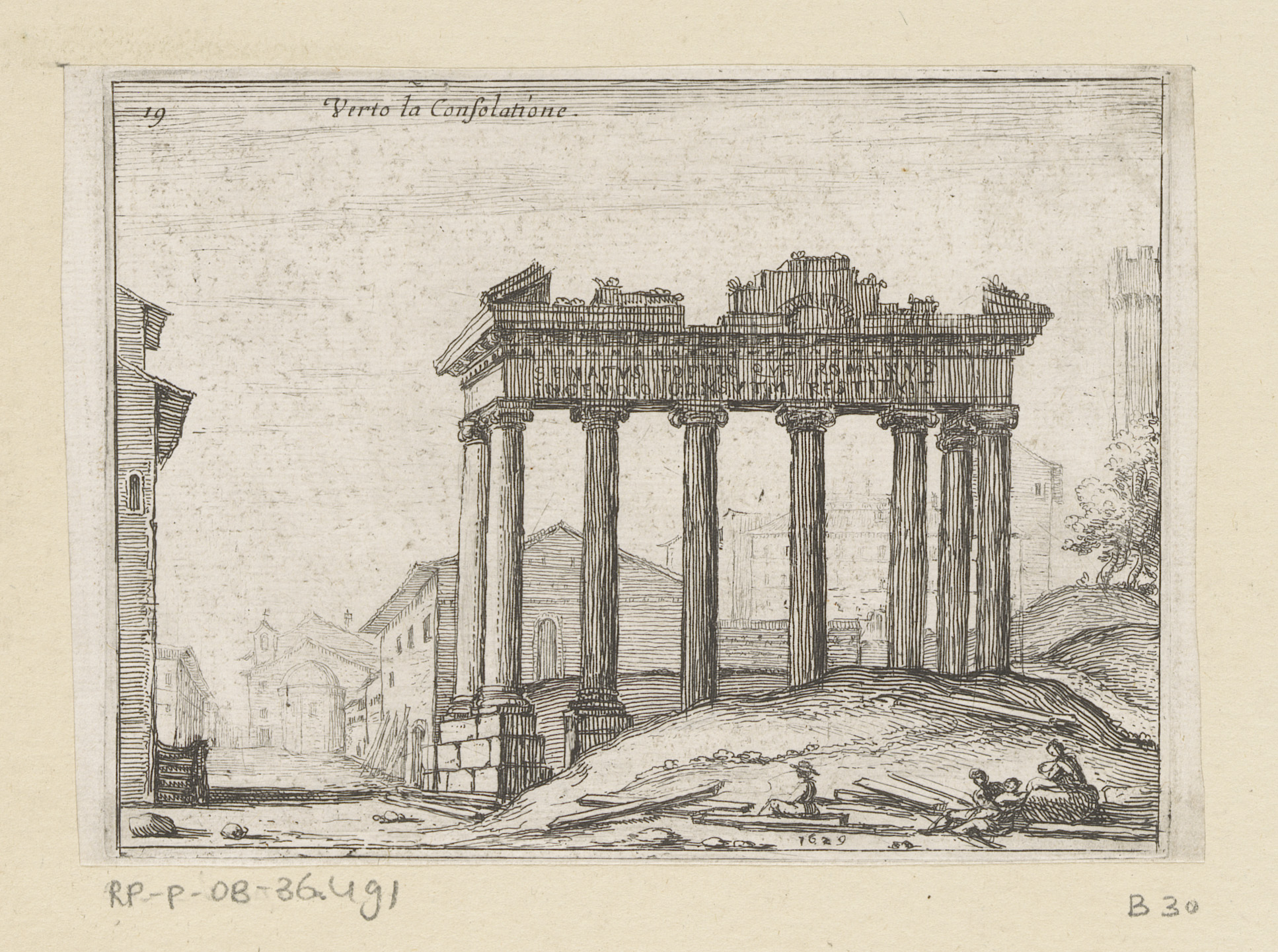Resten van de Tempel van Saturnus op het Forum Roman...