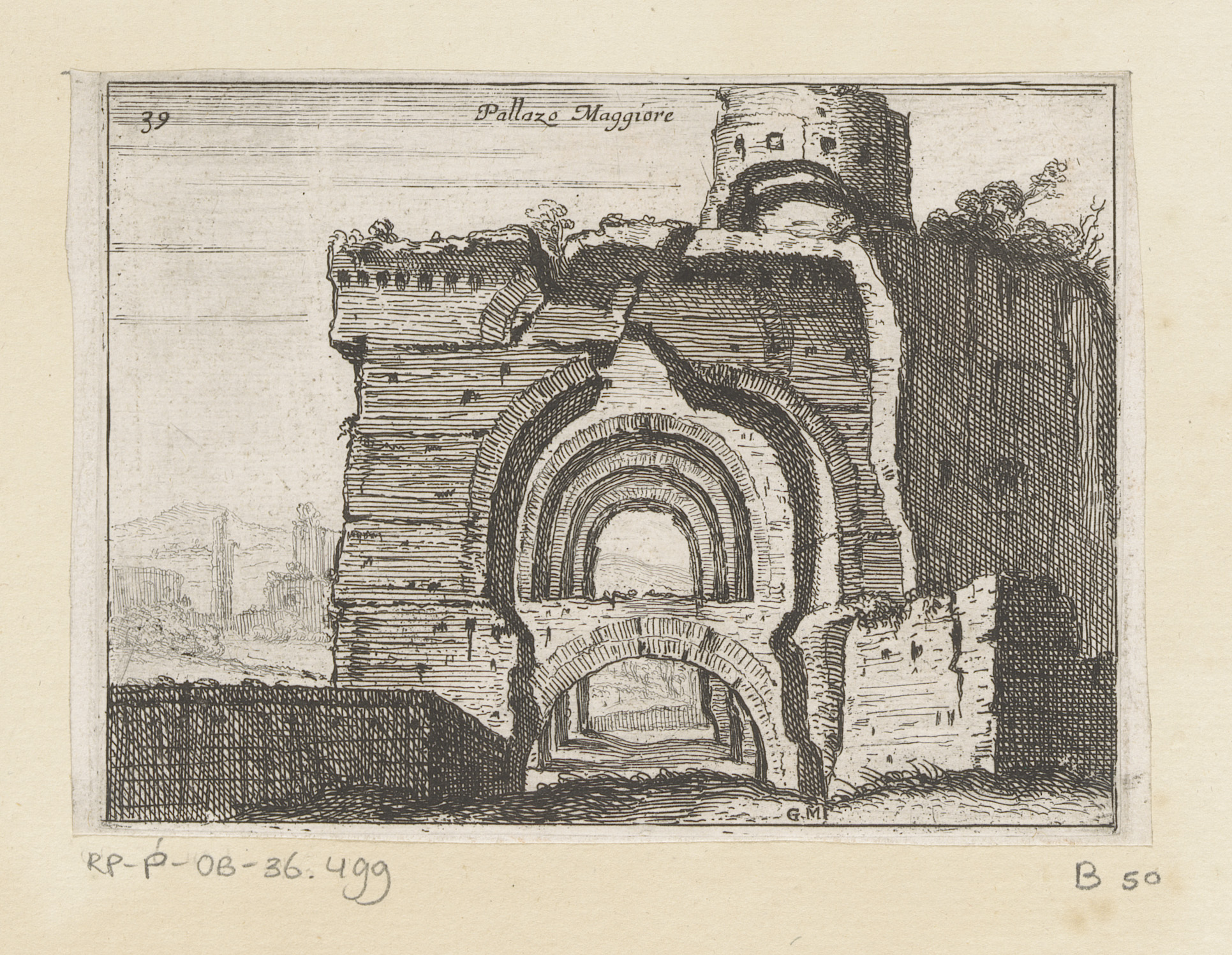 Ruïnes van Palazzo Maggiore te Rome en gebouwen in d...
