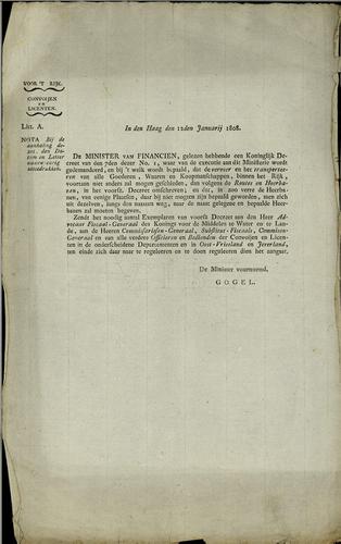 Kennisgeving landsmiddelen, 1809