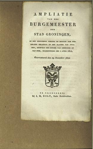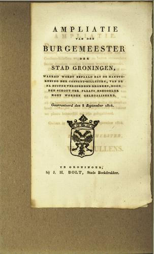 Ampliatie van den Burgemeester der Stad Groningen, 1814