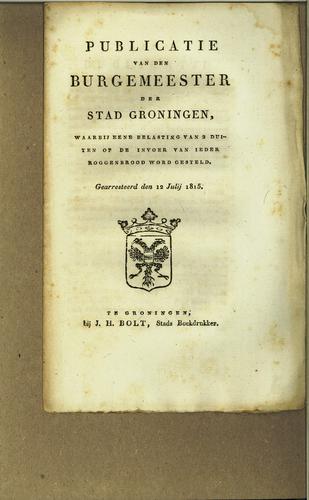 Publicatie heffing op roggebrood, 1815