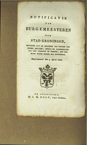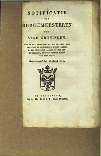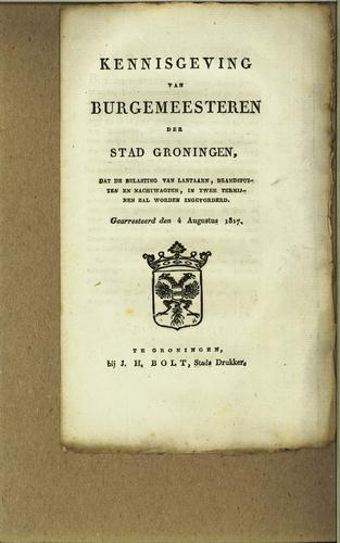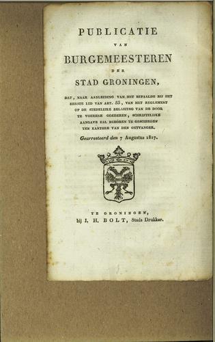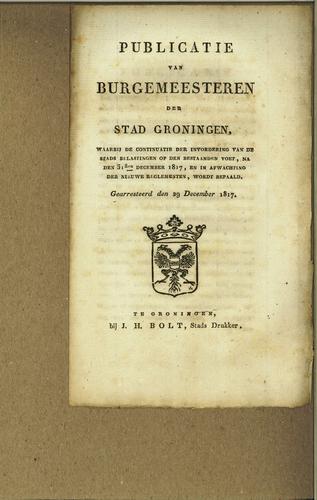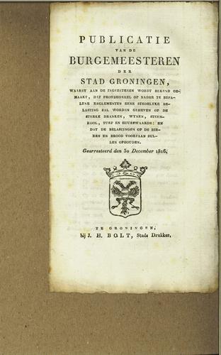 Plakkaat, stedelijke accijnzen, Groningen, 1814