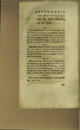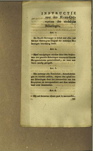 Instructie ontvanger stadsbelasting, 1817