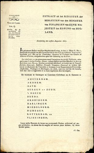 Publicatie over nieuwe stedelijke belastingen, 1807