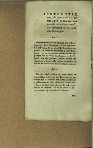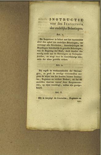 Instructie stedelijke belastingen, 1817