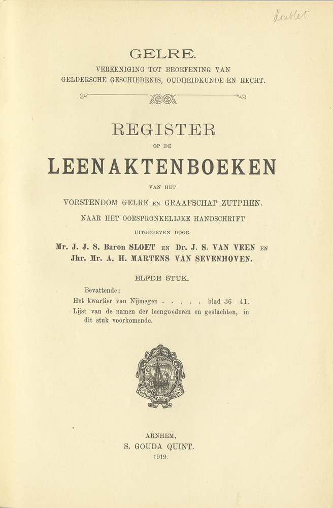 Gelre, Vereeniging tot Beoefening van Geldersche Geschiedenis, Oudheidkunde en Recht