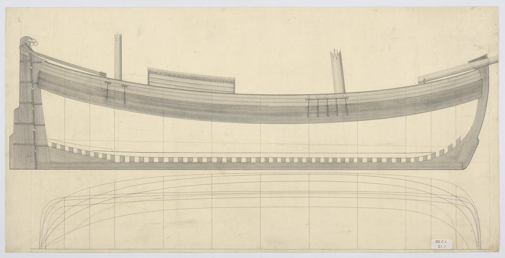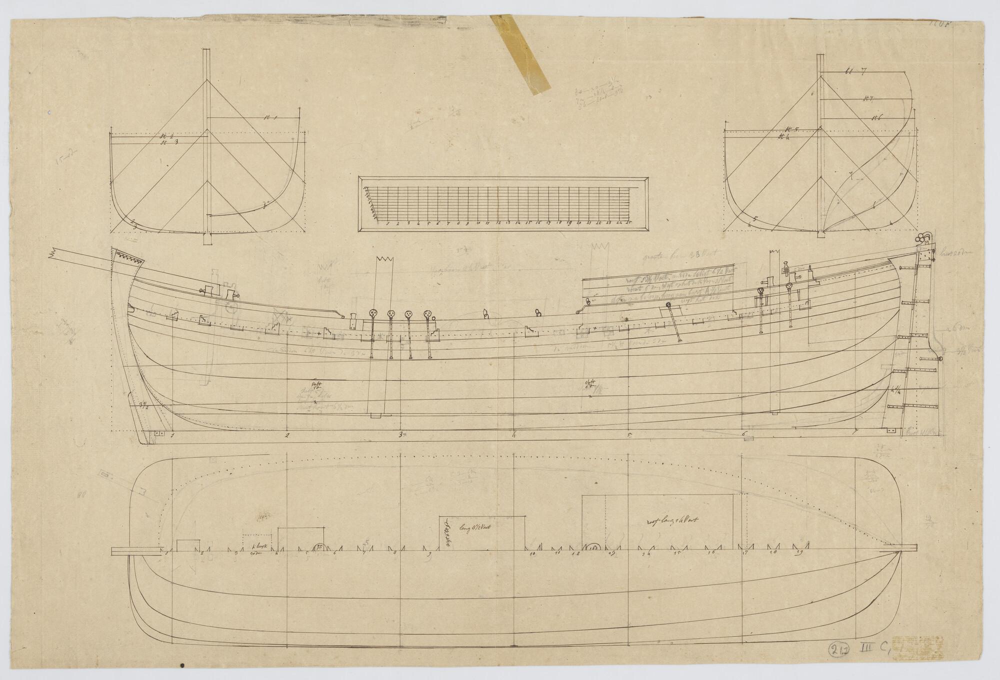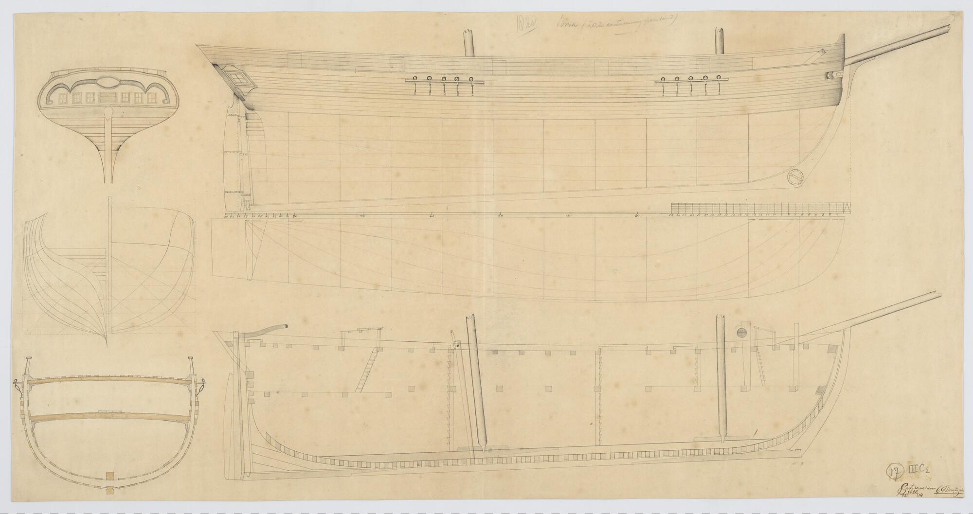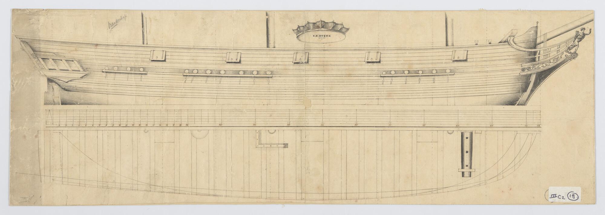Lijnenplan en constructietekening van het barkschip ...