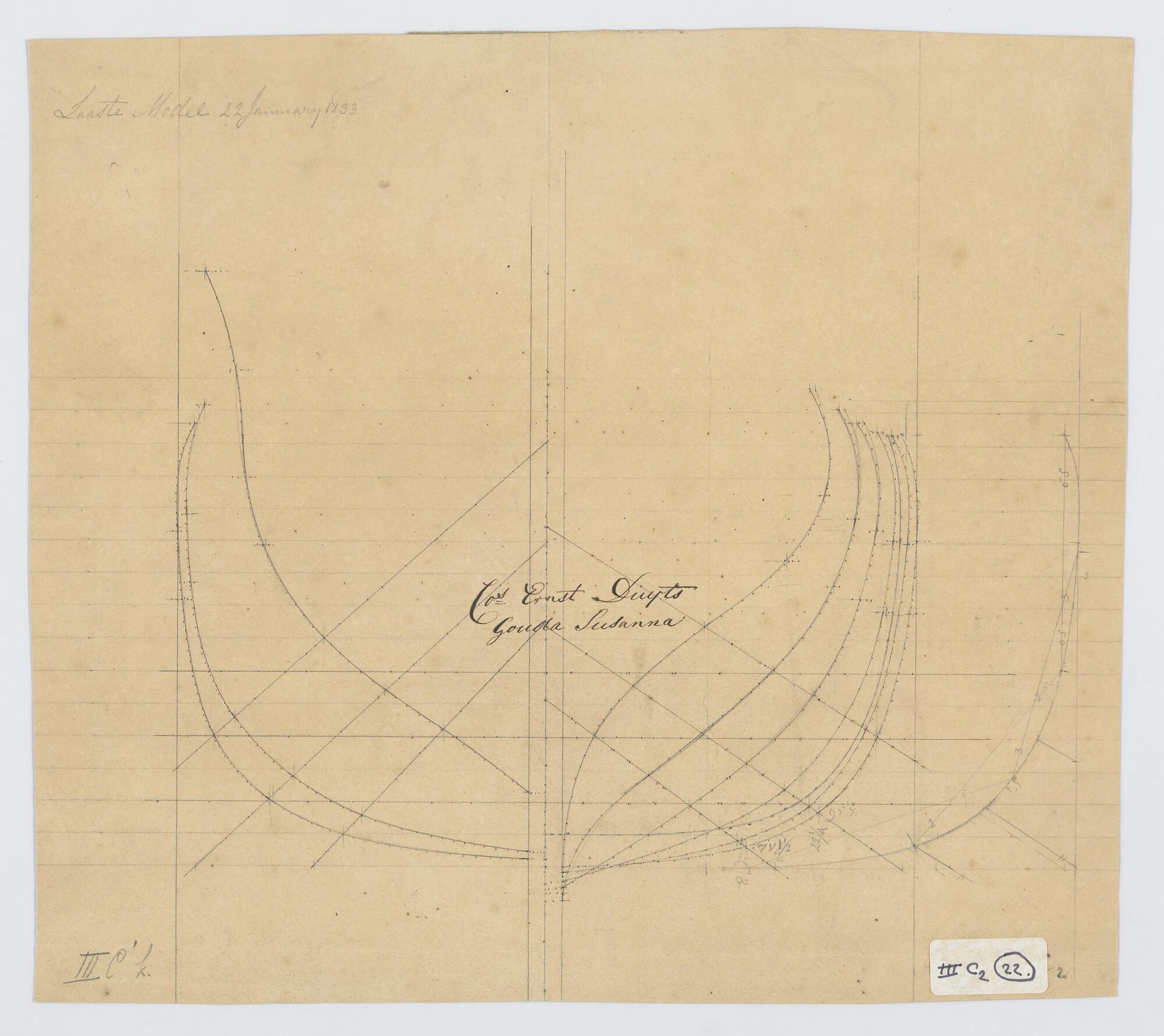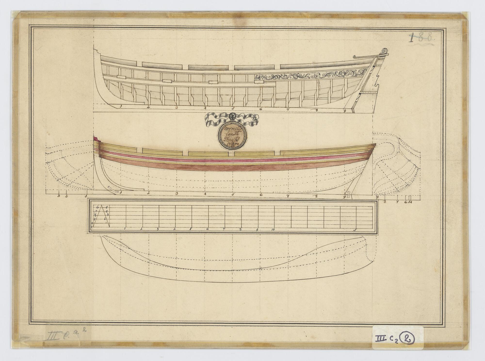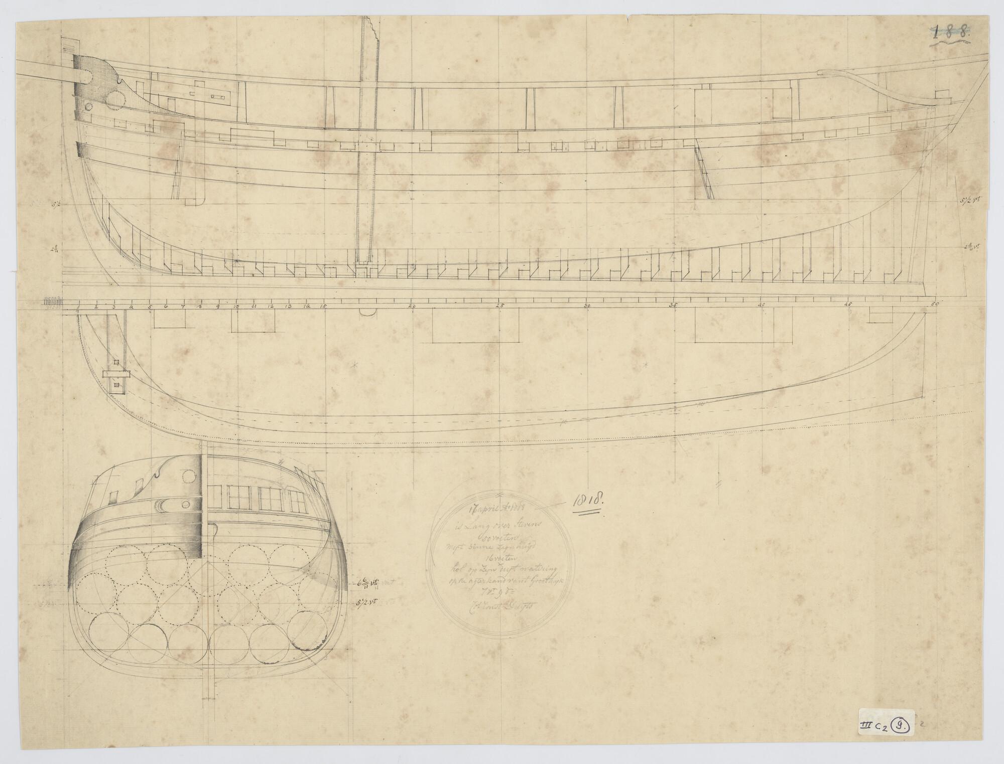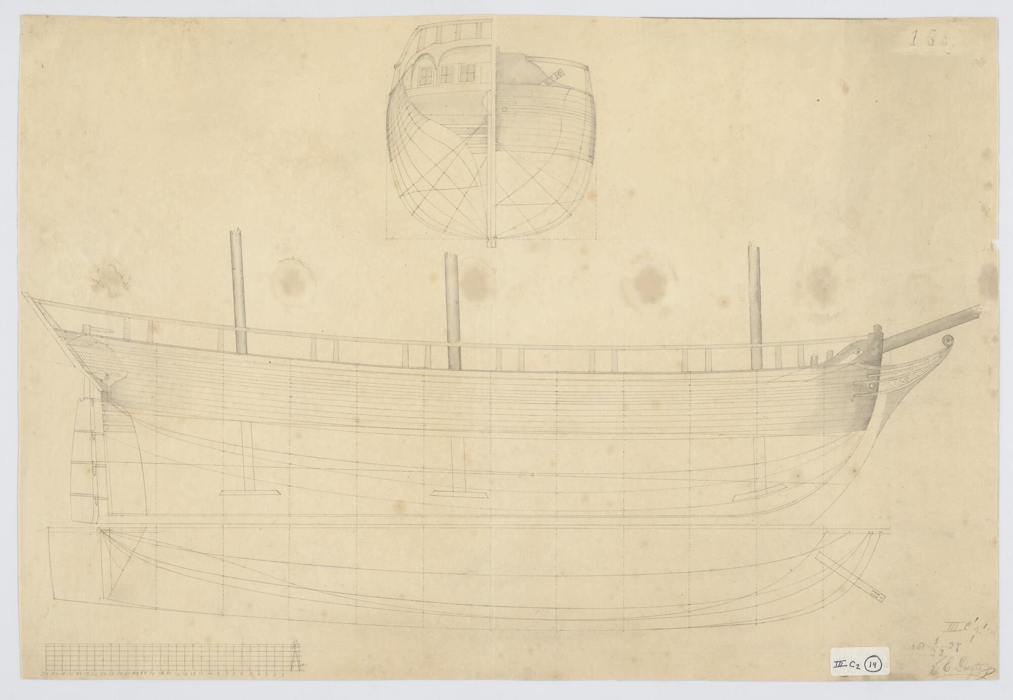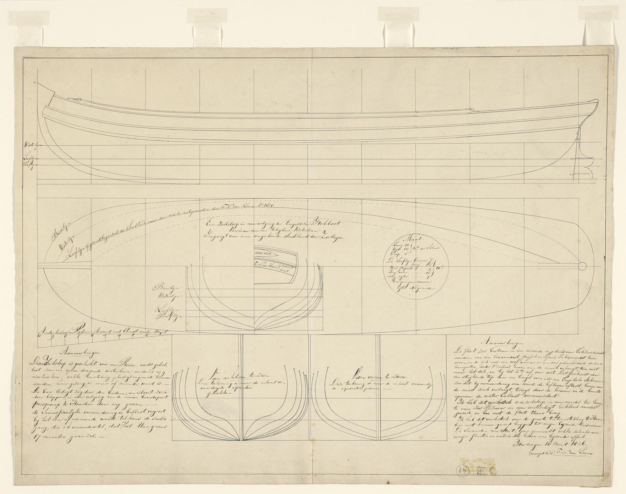 Lijnenplan en constructietekening van het barkschip ...