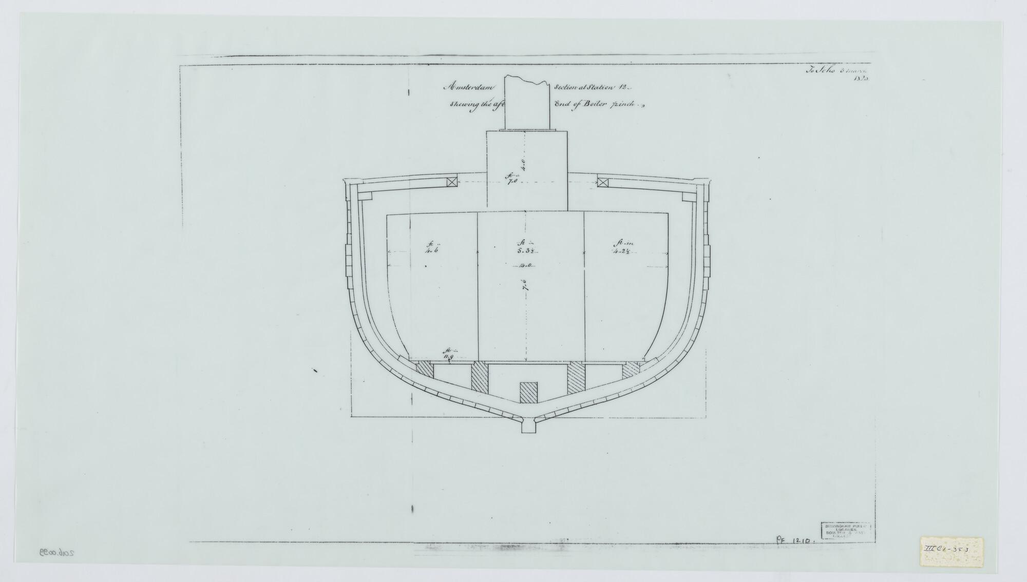 Dwarsdoorsnede op spant 12 van de radersleepboot Noo...
