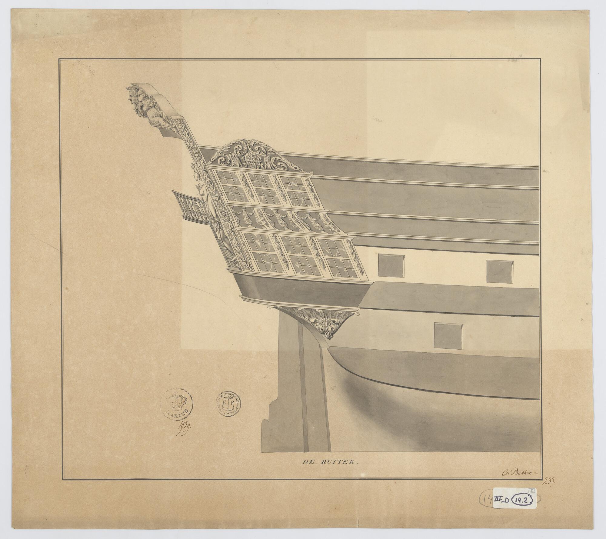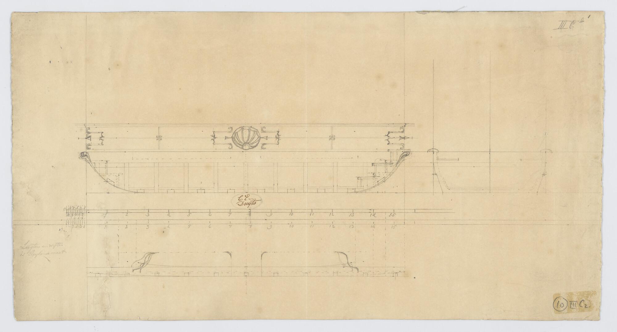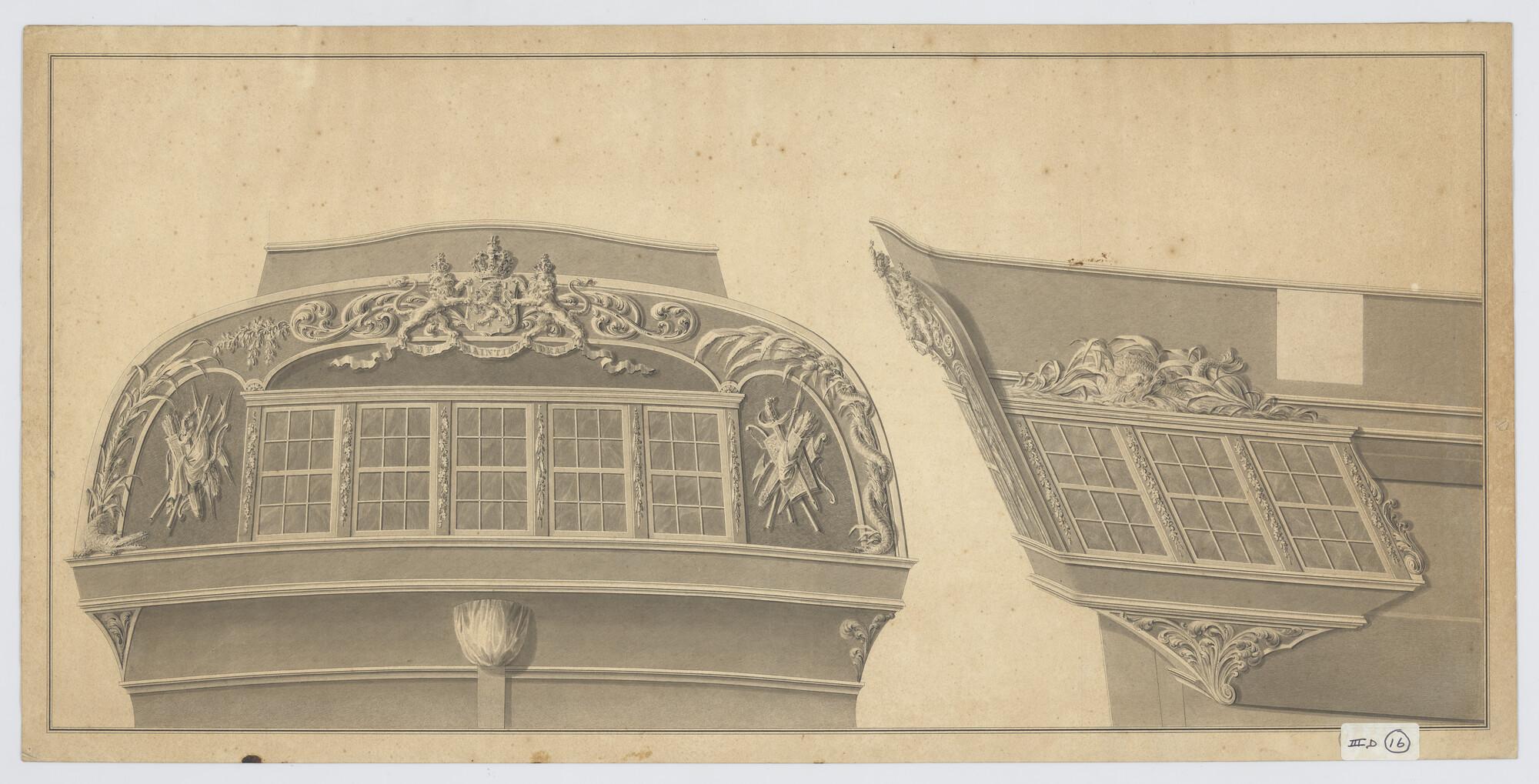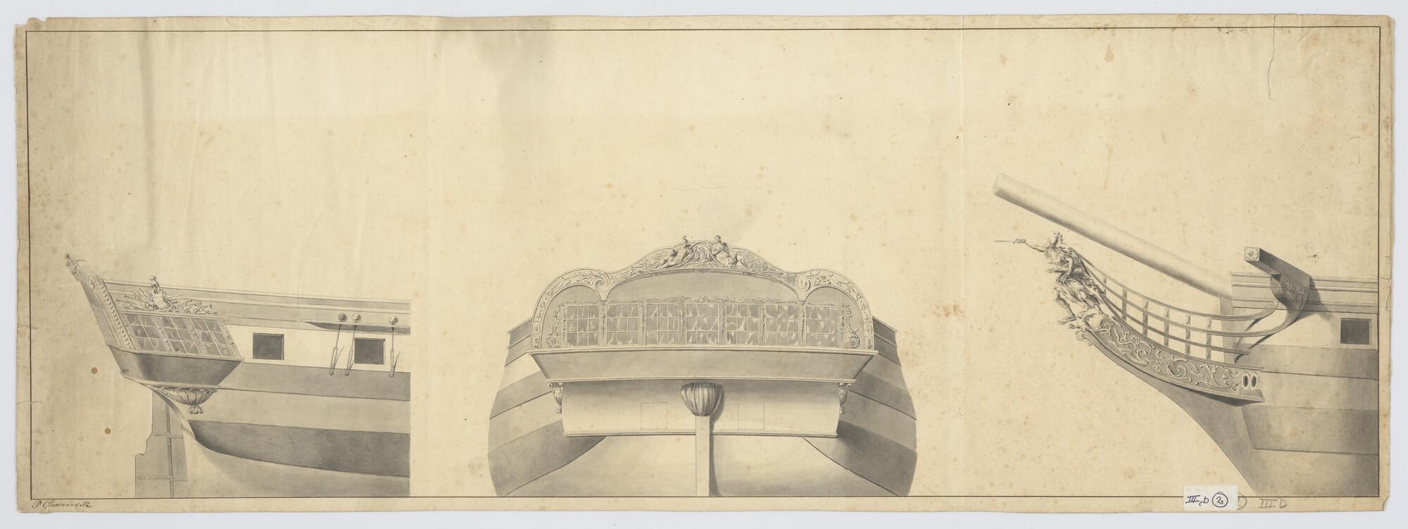 Scheg, spiegel en zijgalerij van het linieschip 'Cha...