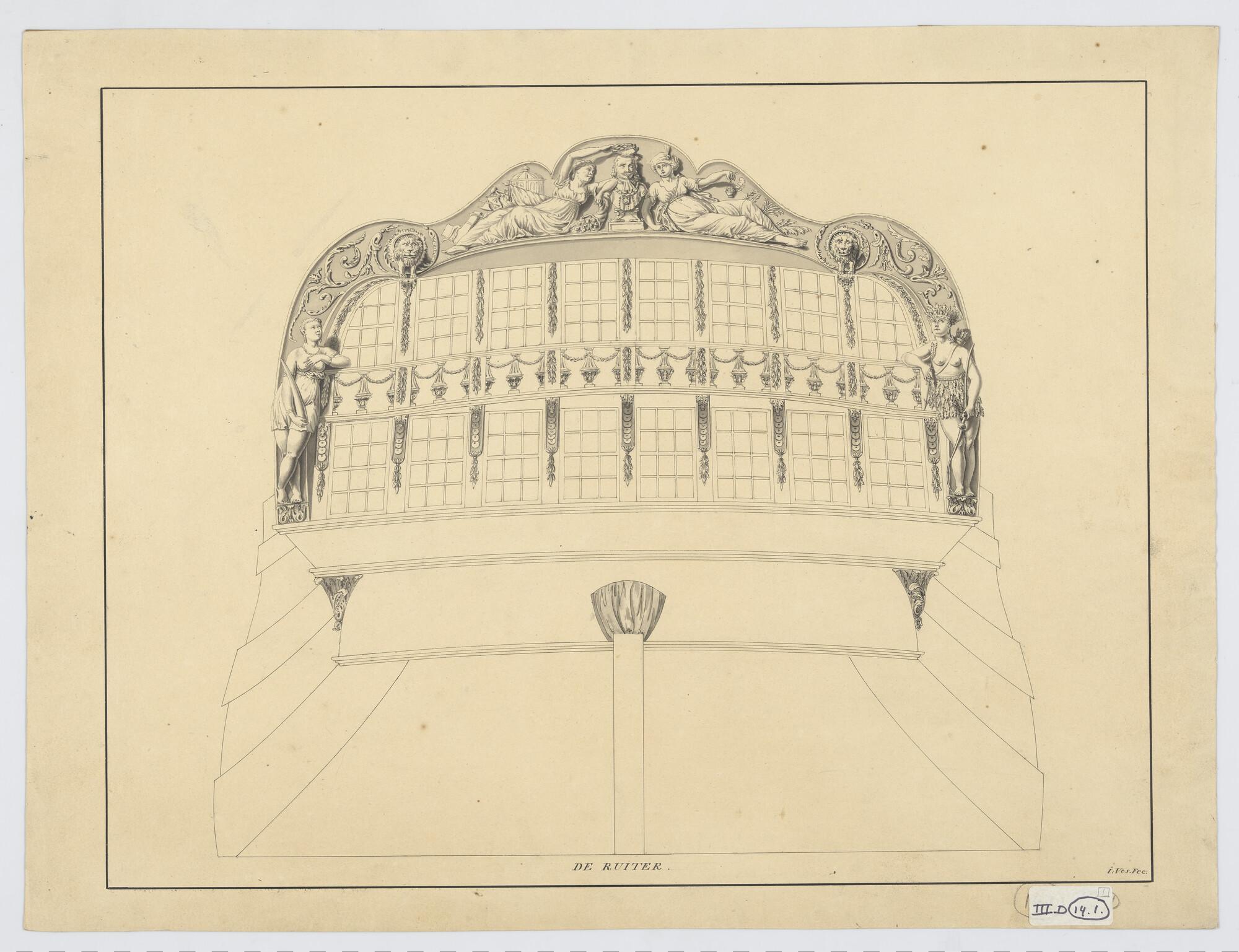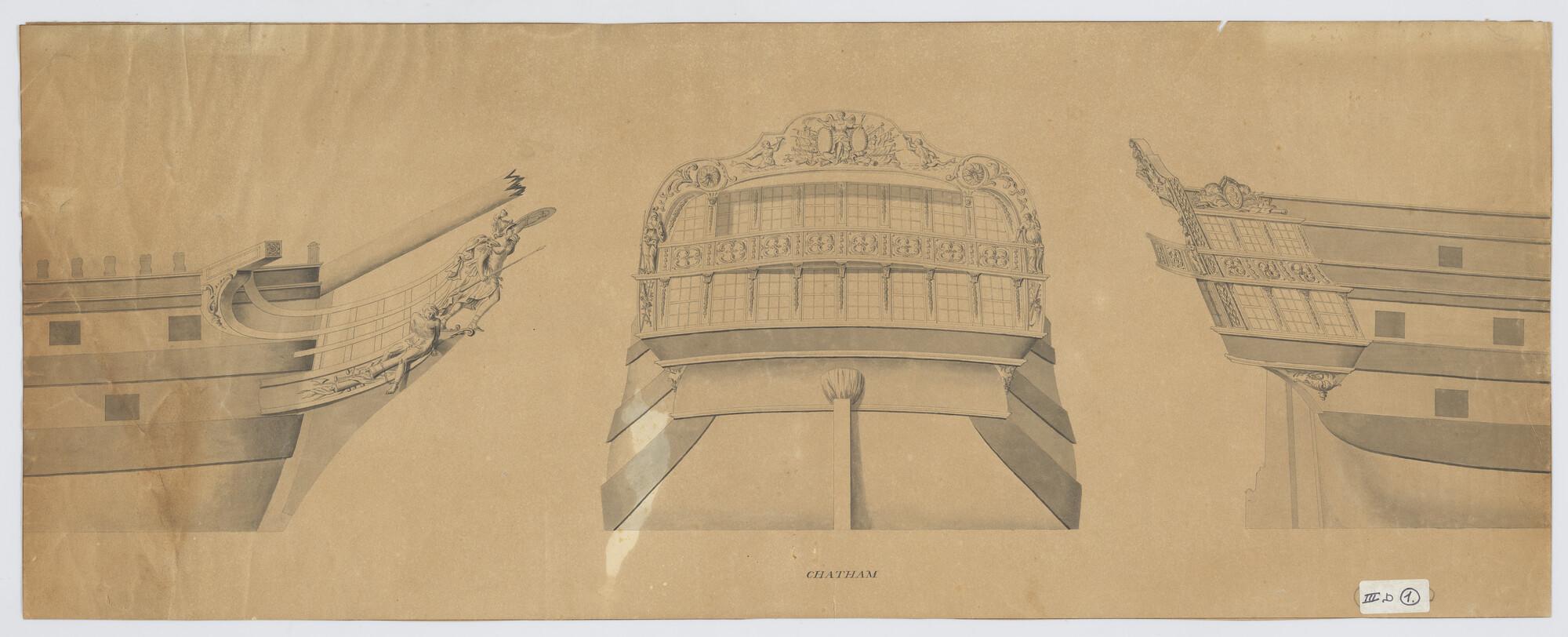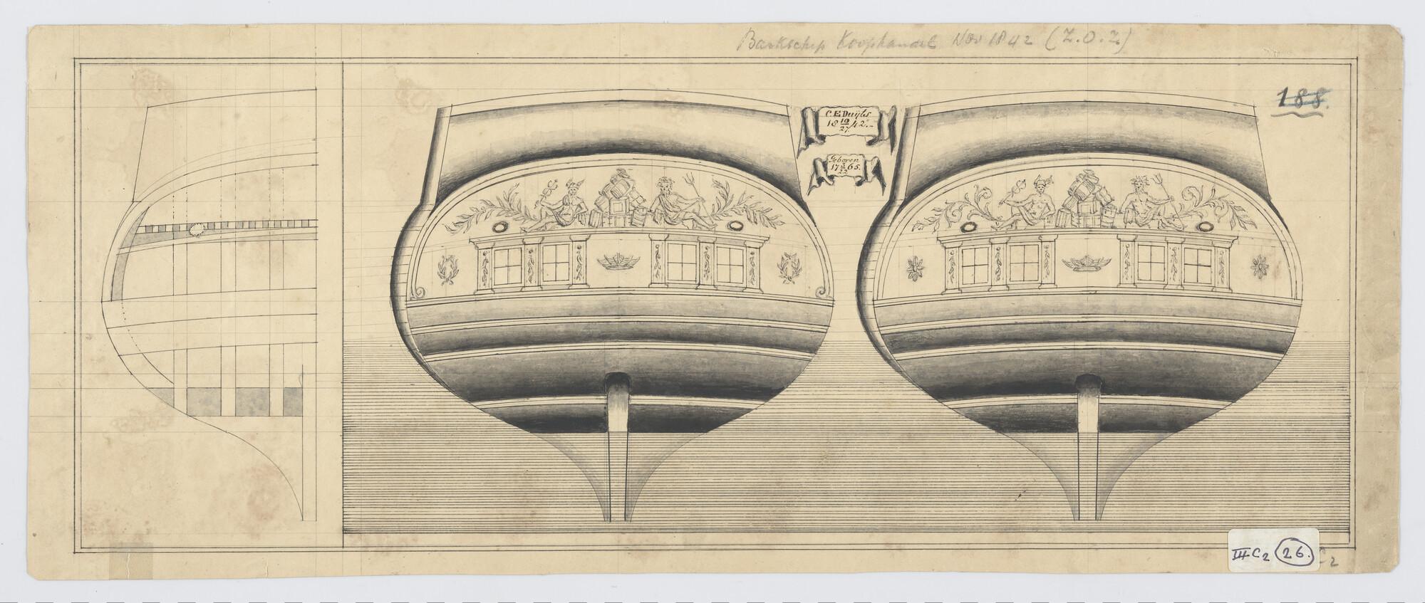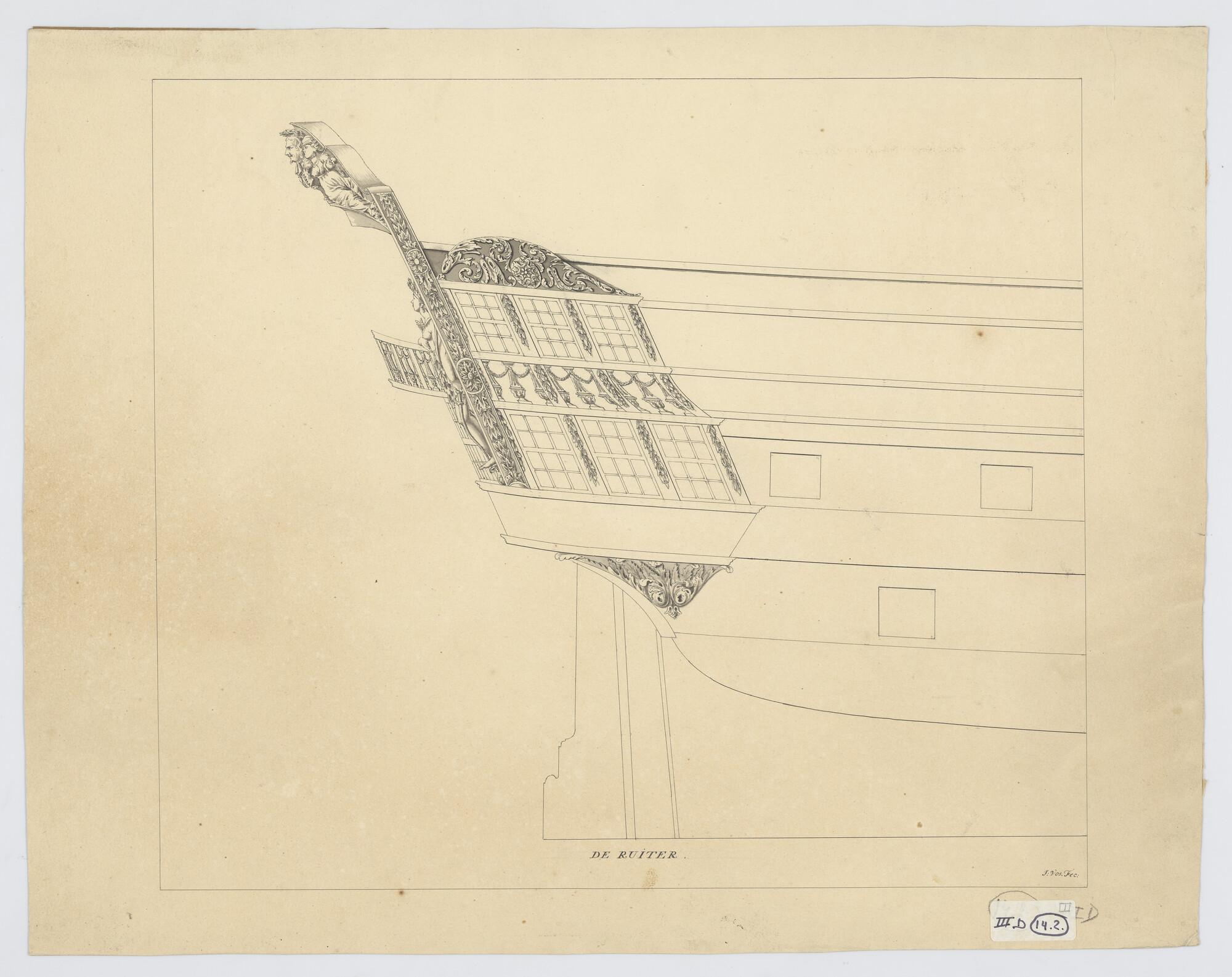 Scheg, spiegel en zijgalerij van het linieschip 'Cha...
